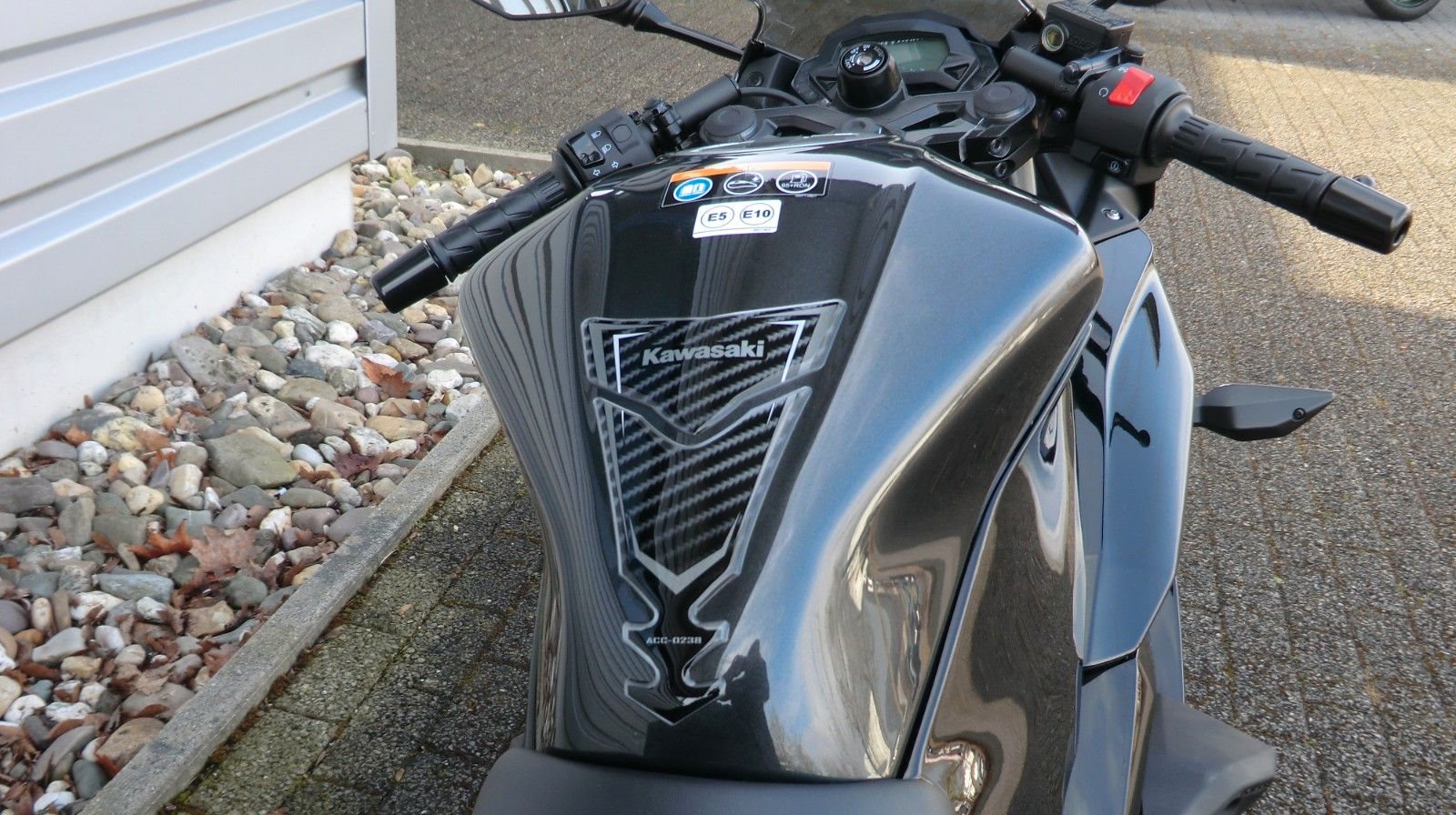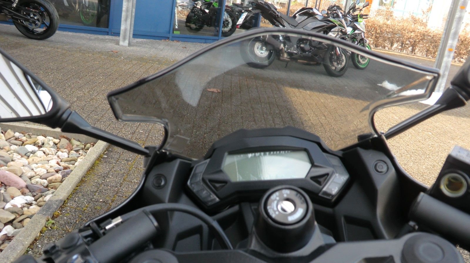 weist in Richtung Ninja ZX-10R. Mit kraftvollen 11 kW (15 PS) bietet der Motor schon im unteren Drehzahlbereich viel Power.