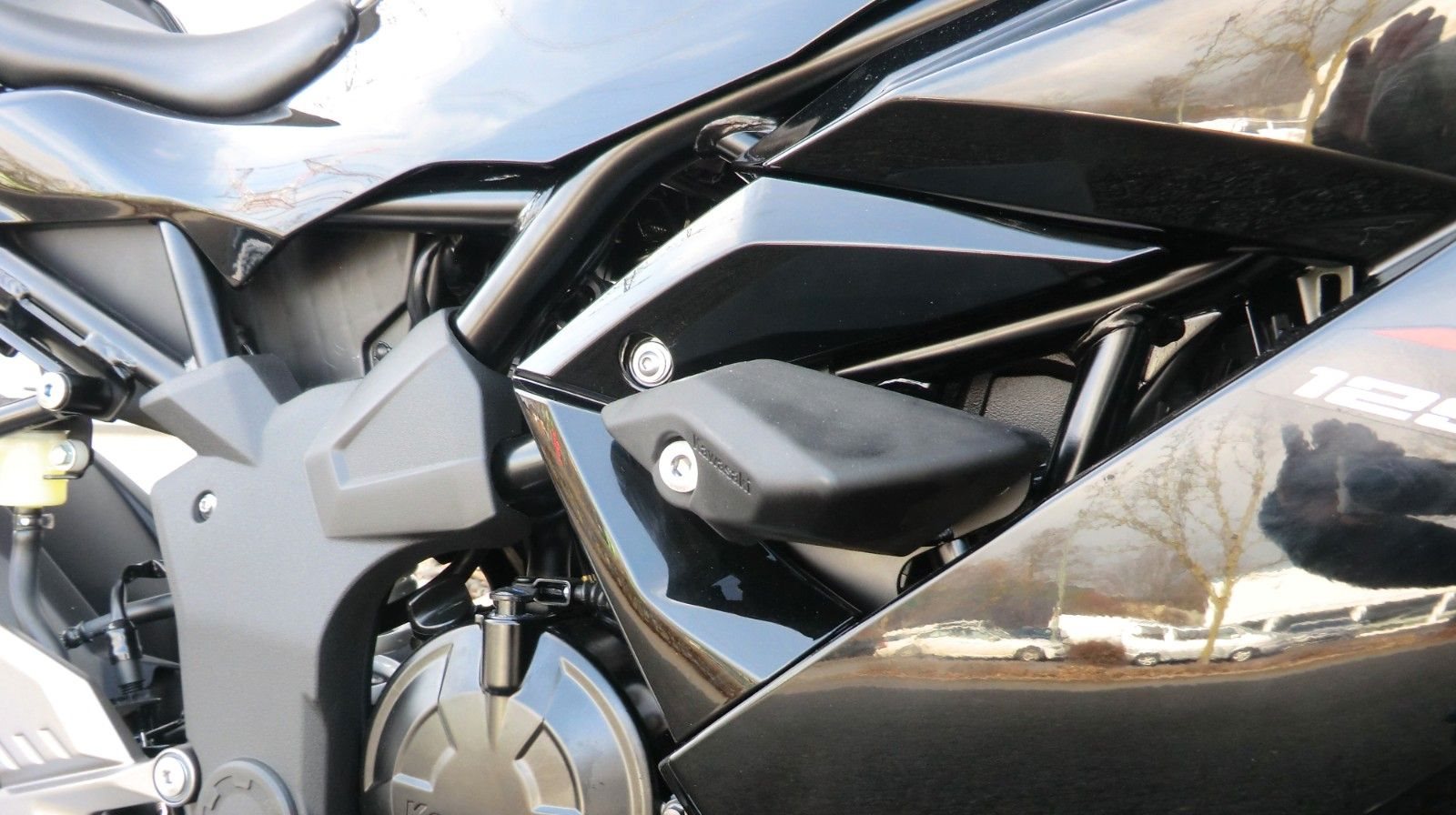 In der Sport-Variante ausgestattet mit getöntem Windschild, Soziussitzabdeckung, Frame-Slidern und Tankpad.